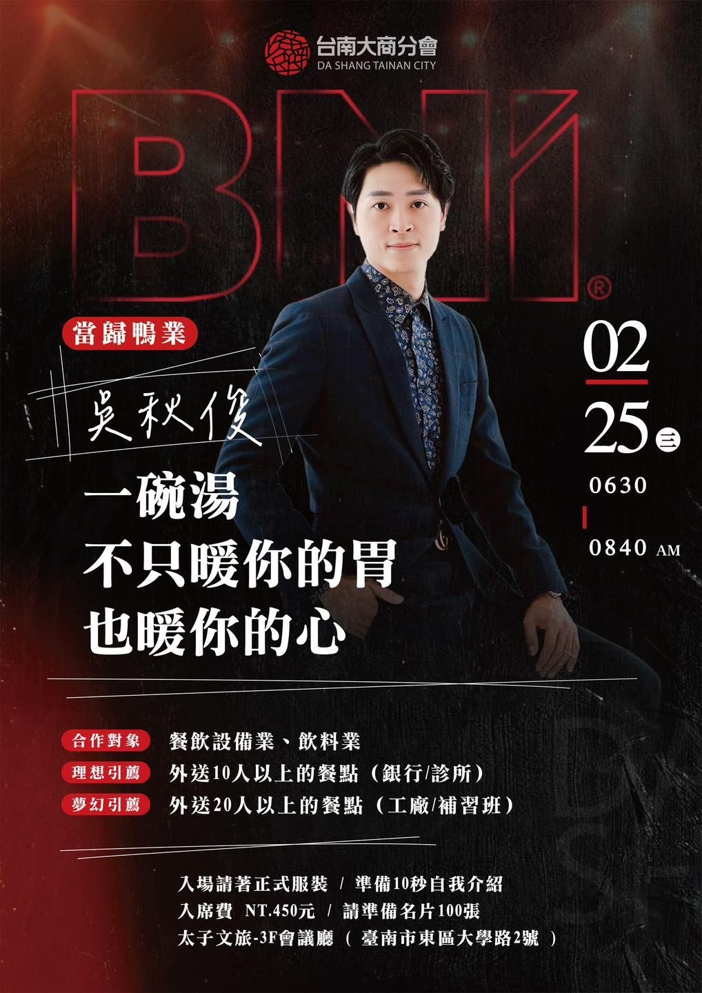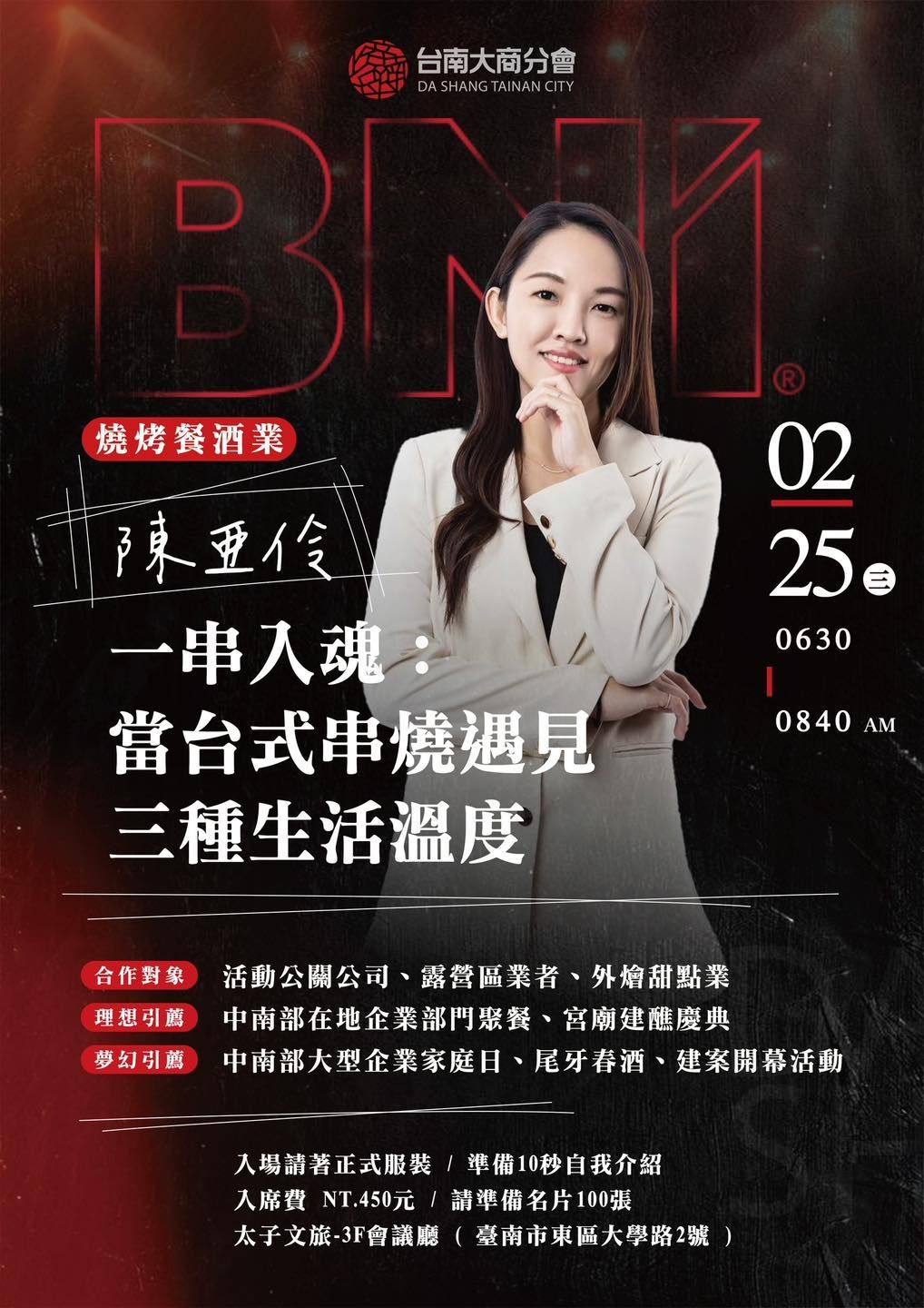 BNI來源自美國,是國際知名由各行業代表人士組成的商務引薦平台,核心精神是「付出者收穫」( Givers Gain ),宗旨是為會員透過彼此的信任,相互引薦優質業務進而產業協作;使命是協助會員運用有架構、正向積極、以及專業的引薦行銷計劃,和各領域的優質商務人士建立長期有意義的關係,以壯大會員的事業.....