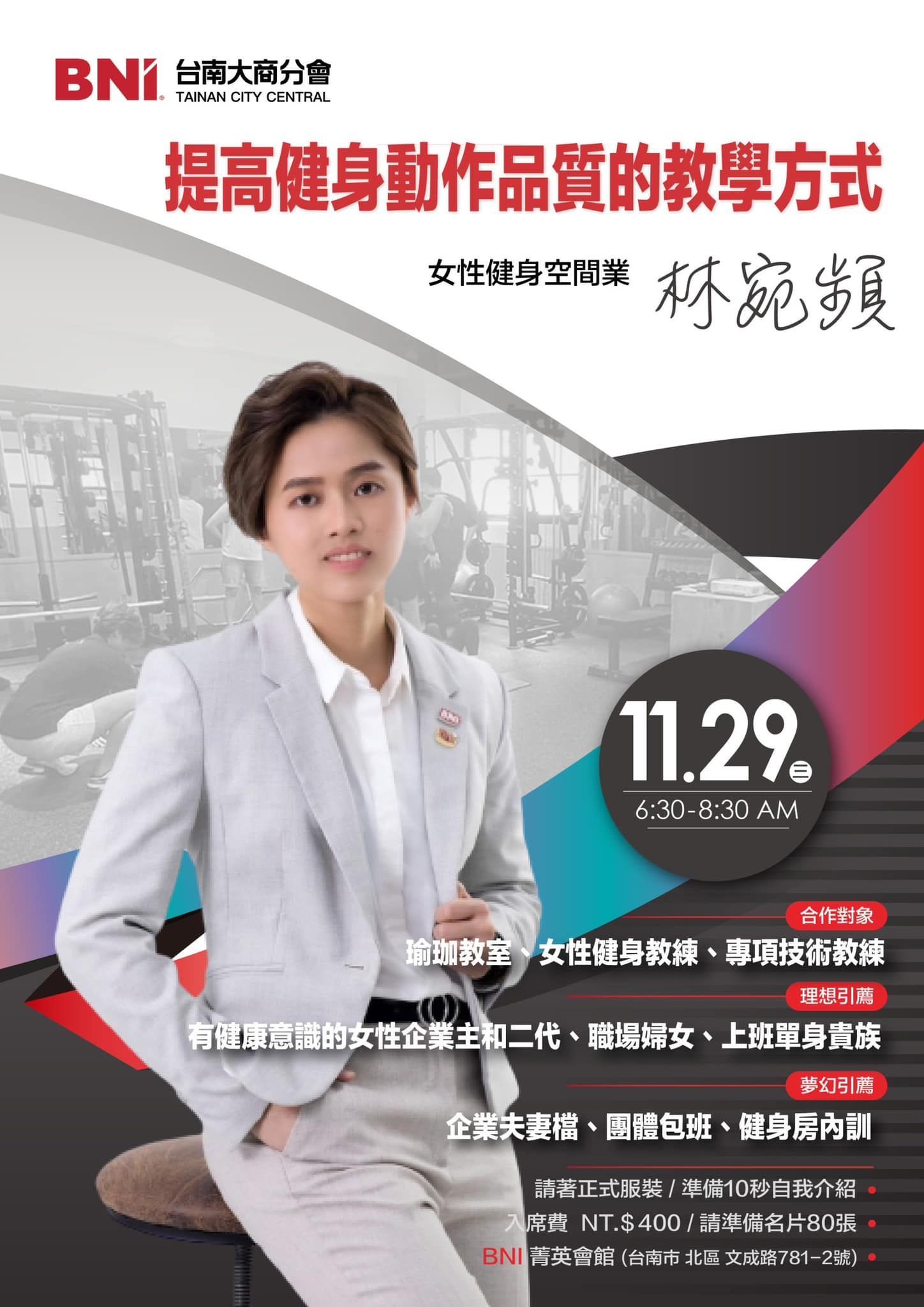 想知道更多女性健身相關資訊和如何變的又美又健康嗎?11/29(三)誠摯邀請您一同來聆聽~