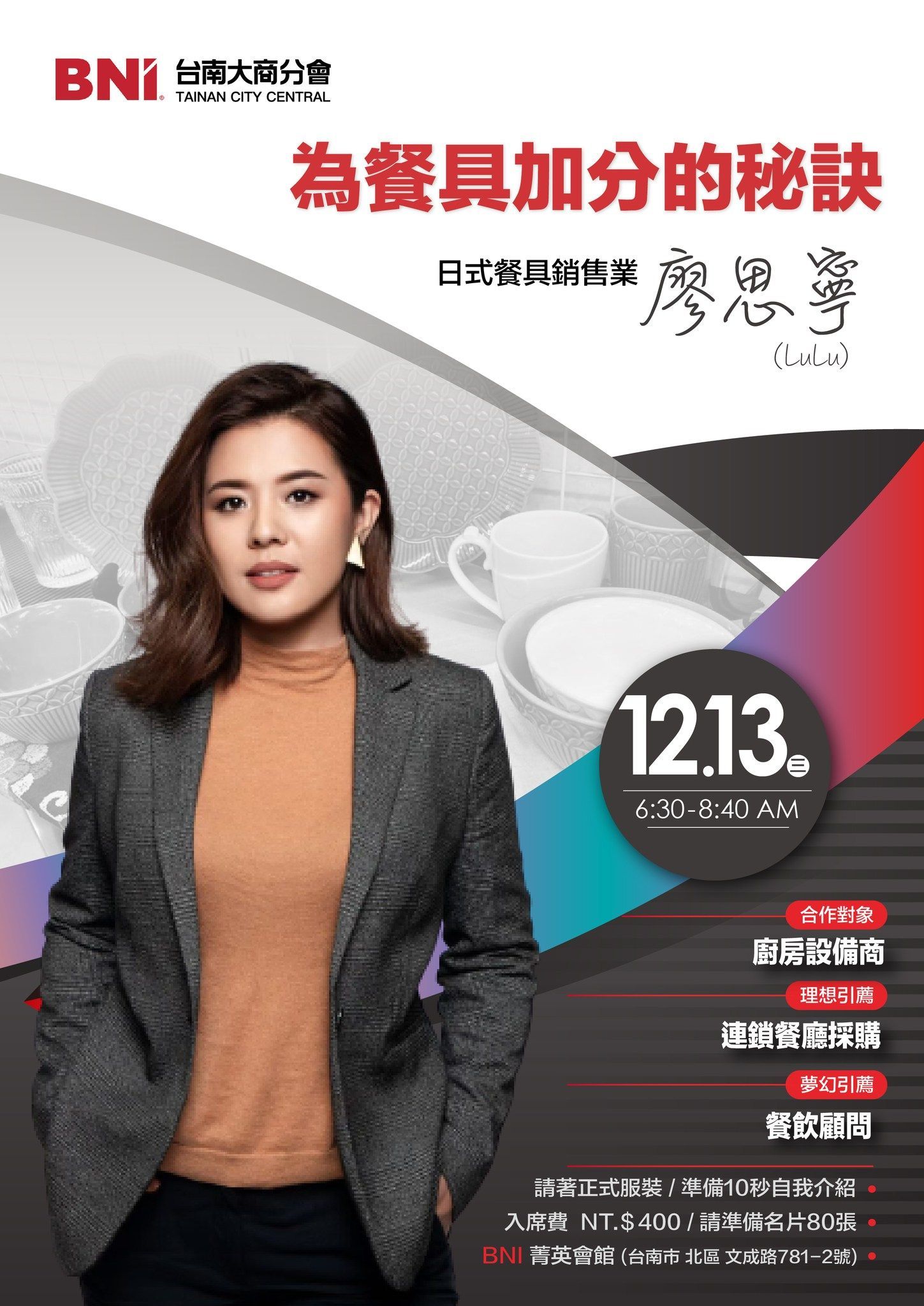 12/13(三)豪記食器Lu Lu將為大家帶來精彩的主題簡報, 歡迎廚房設備商、連鎖餐廳業者、餐飲顧問 一起來聆聽!
