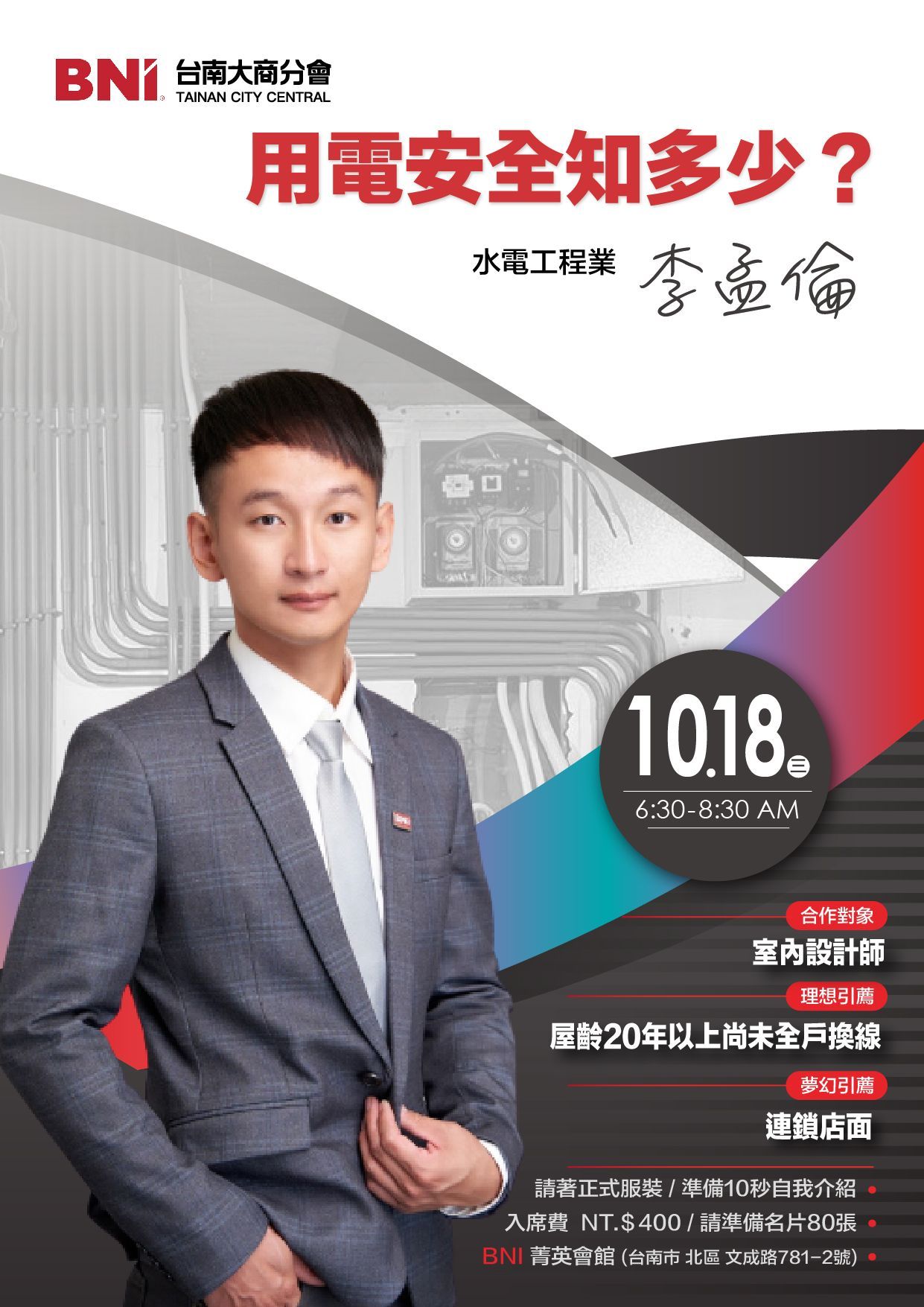 10/18 讓最會使用各種水電工具的孟倫水電師傅,幫助您更好地了解和應對用電中可能出現的風險!