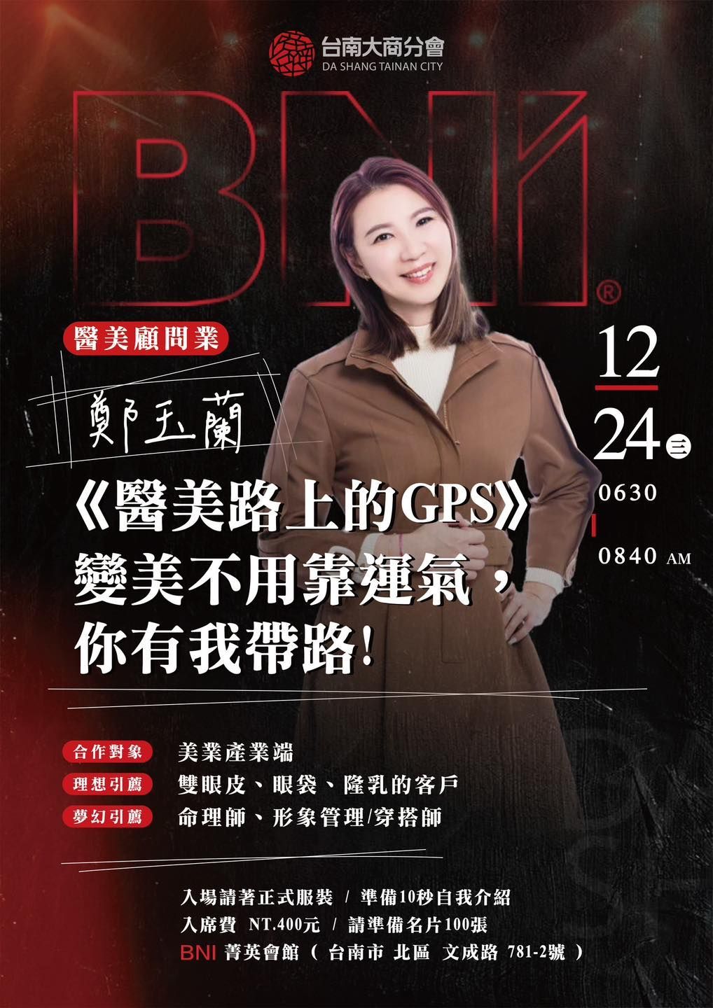📍地點:BNI 菁英會館(台南市北區文成路781-2號)