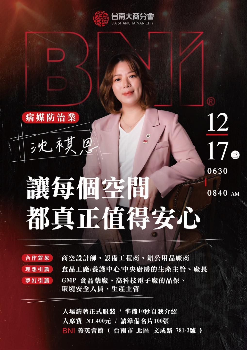 📍地點:BNI 菁英會館(台南市北區文成路781-2號)