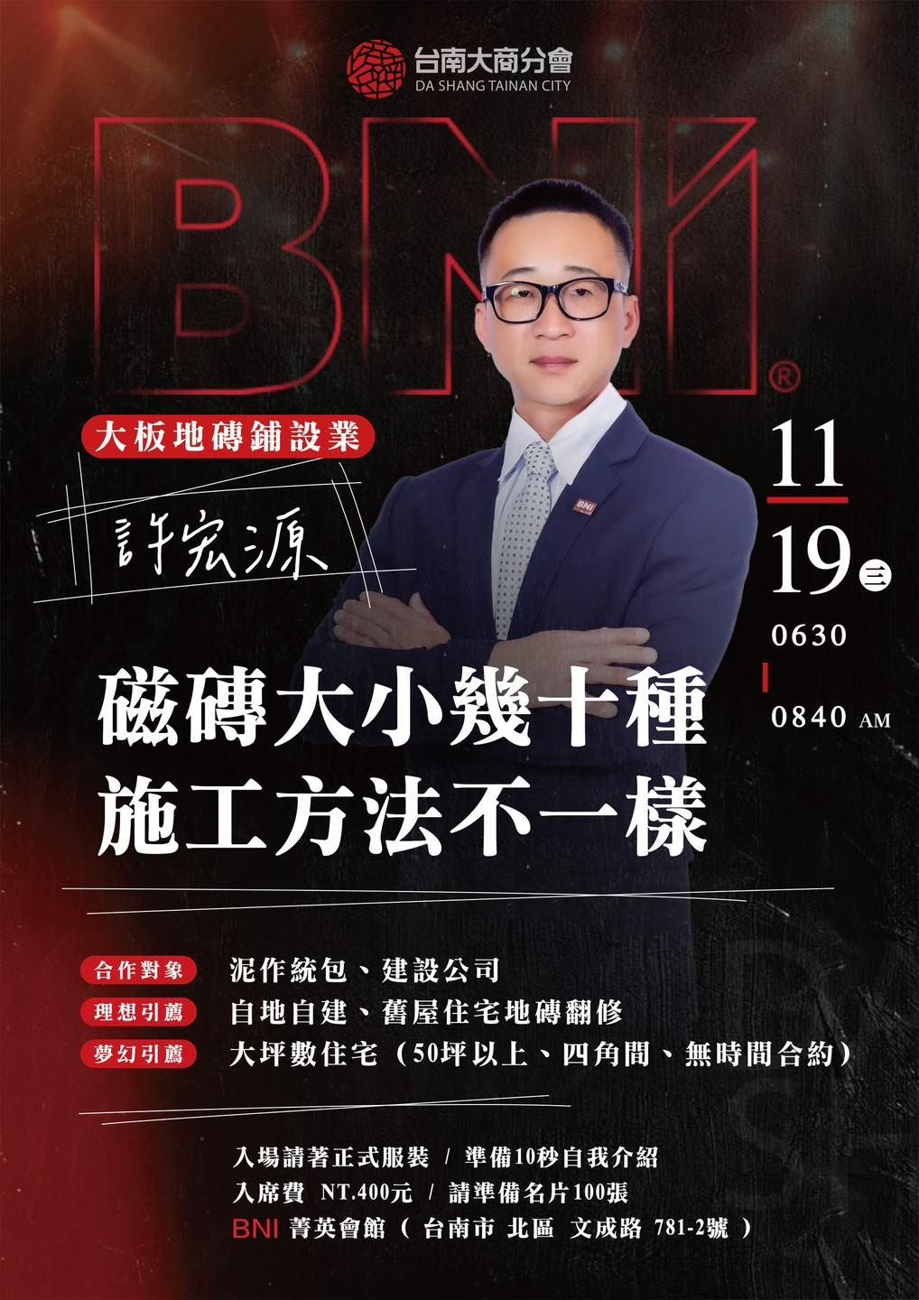 📍地點:BNI 菁英會館(台南市北區文成路781-2號)