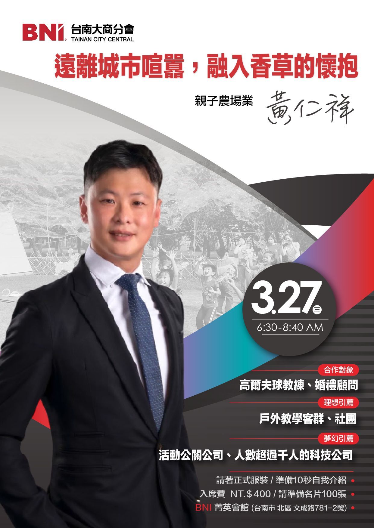 如此優質的親子農場到底哪裡找呢? 想了解更多詳細資訊,您一定不能錯過 我們春園大仁哥的主題簡報!! 歡迎有戶外教學需求或需要大型場地舉辦活動的公司團體,以及活動公關公司一同來聆聽。
