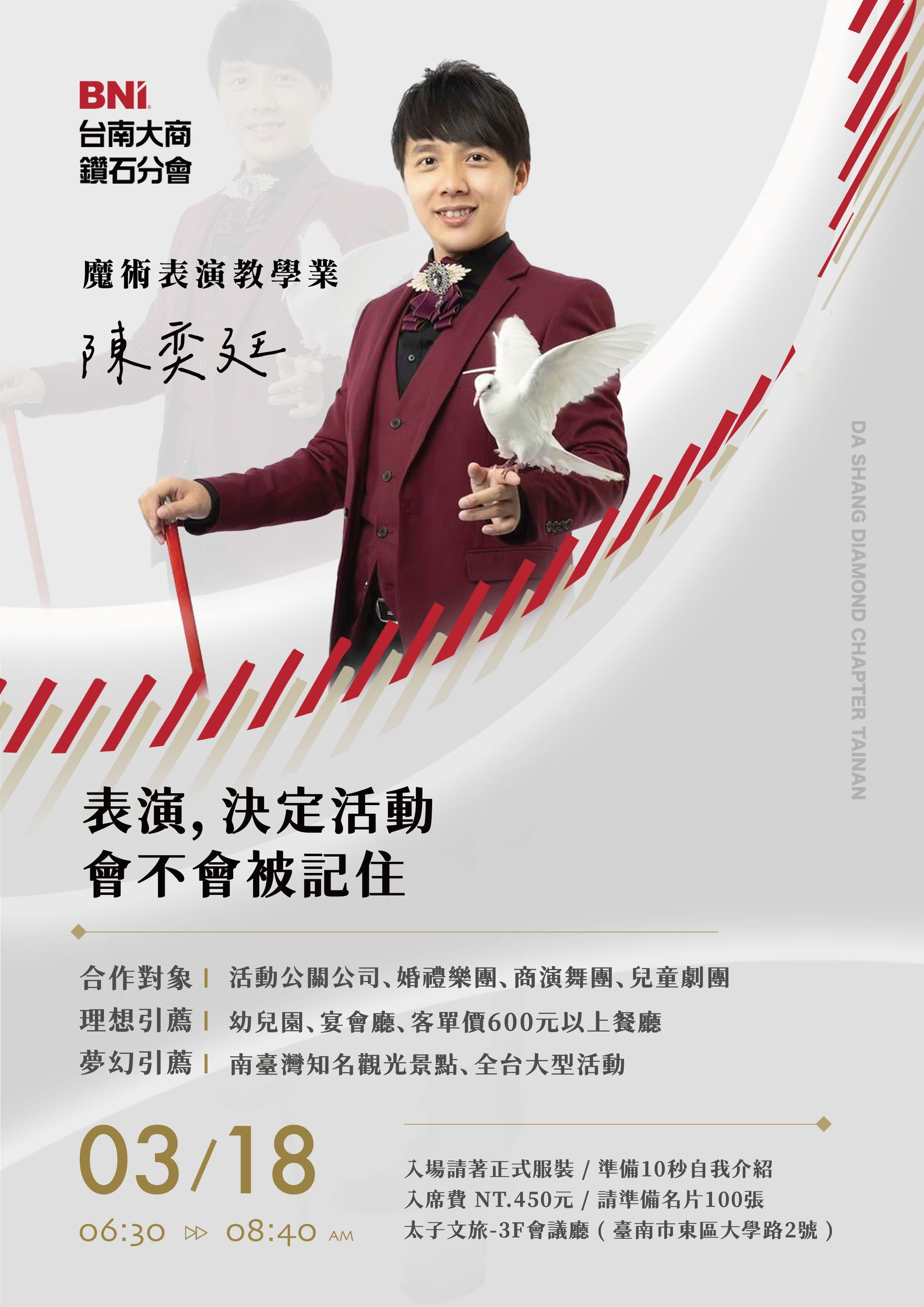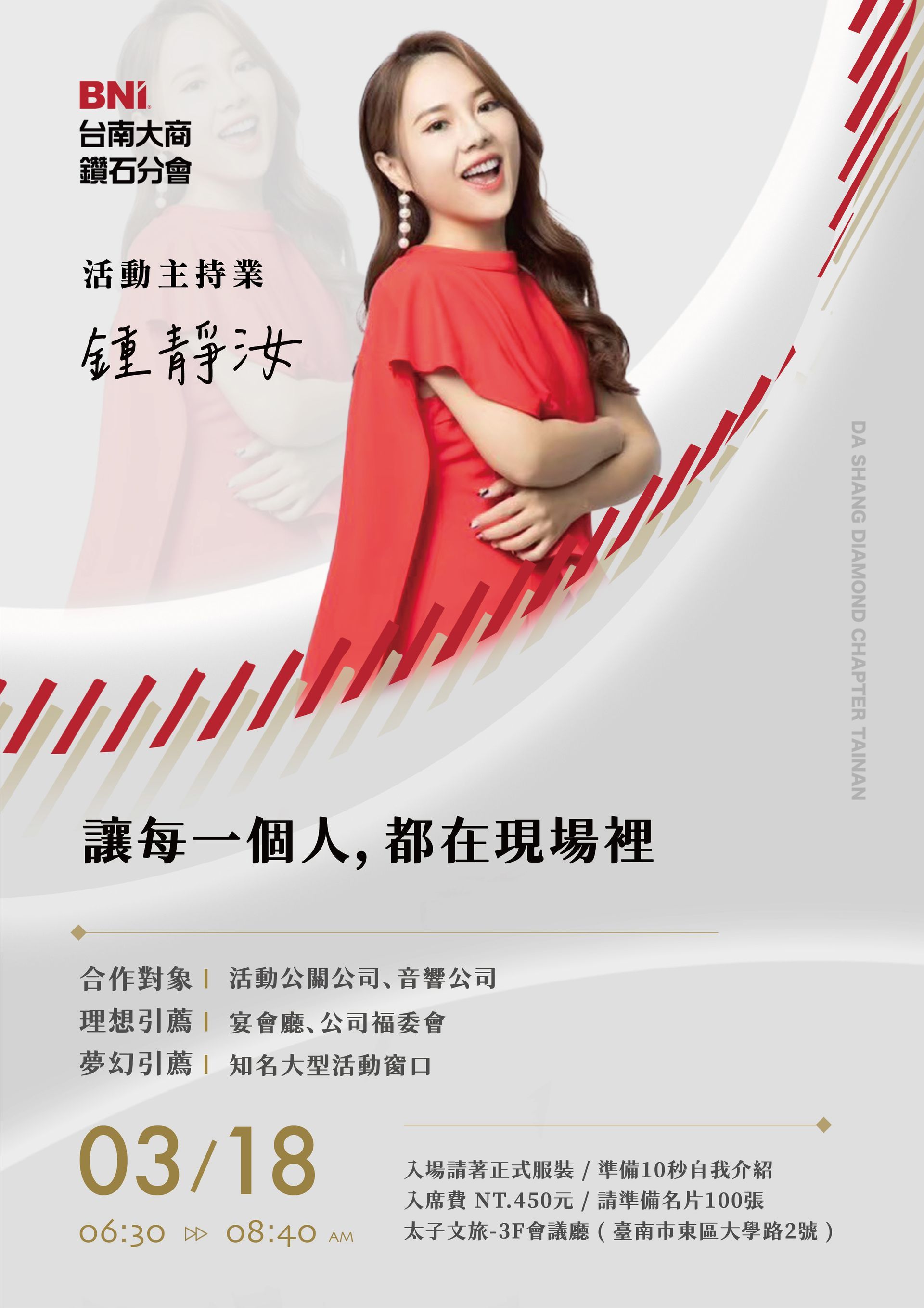 BNI來源自美國,是國際知名由各行業代表人士組成的商務引薦平台,核心精神是「付出者收穫」( Givers Gain ),宗旨是為會員透過彼此的信任,相互引薦優質業務進而產業協作;使命是協助會員運用有架構、正向積極、以及專業的引薦行銷計劃,和各領域的優質商務人士建立長期有意義的關係,以壯大會員的事業.....
