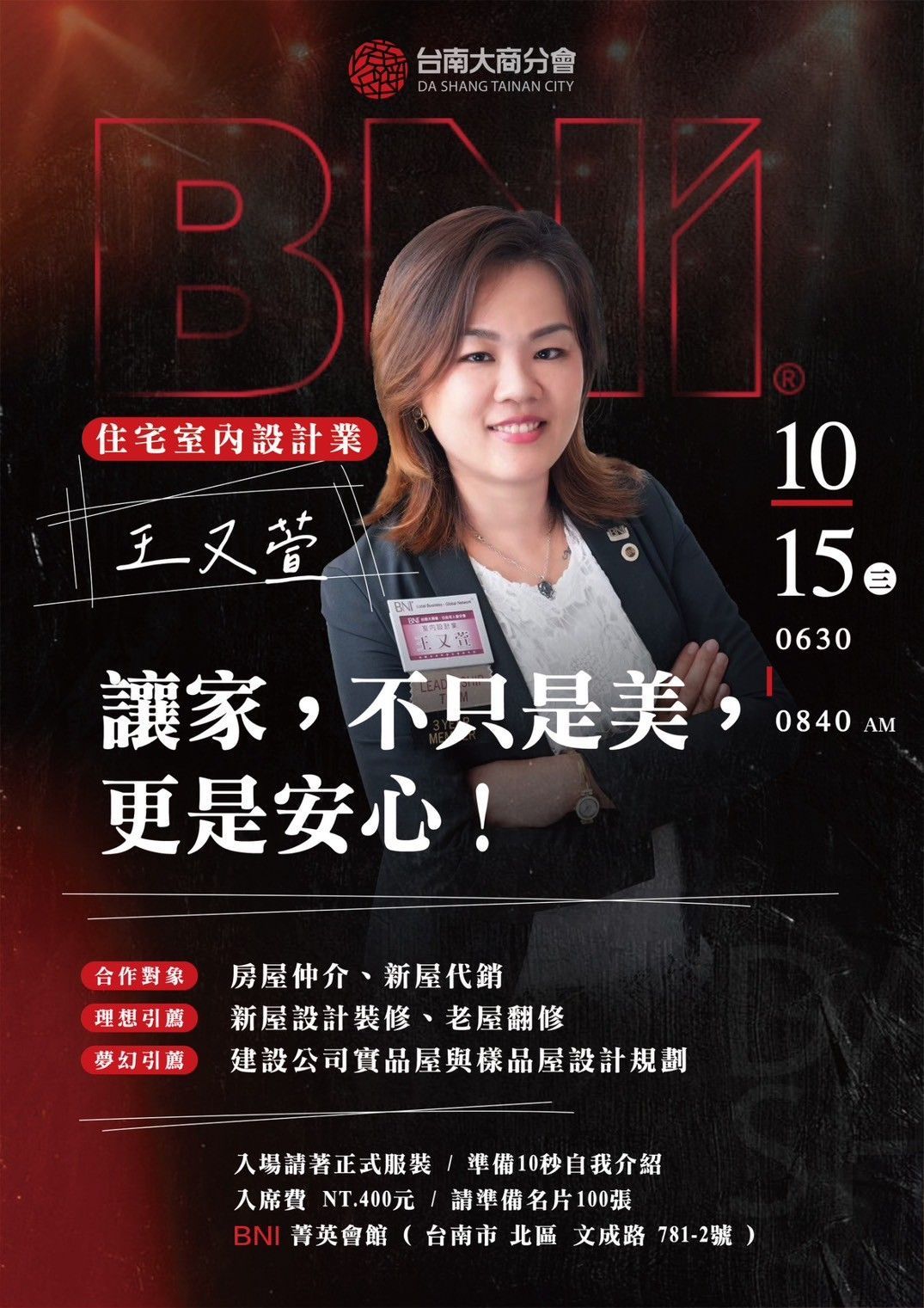 📍地點:BNI 菁英會館(台南市北區文成路781-2號)