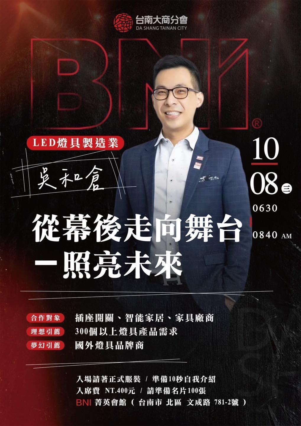 ・地點|BNI菁英會館(台南市北區文成路781-2號)