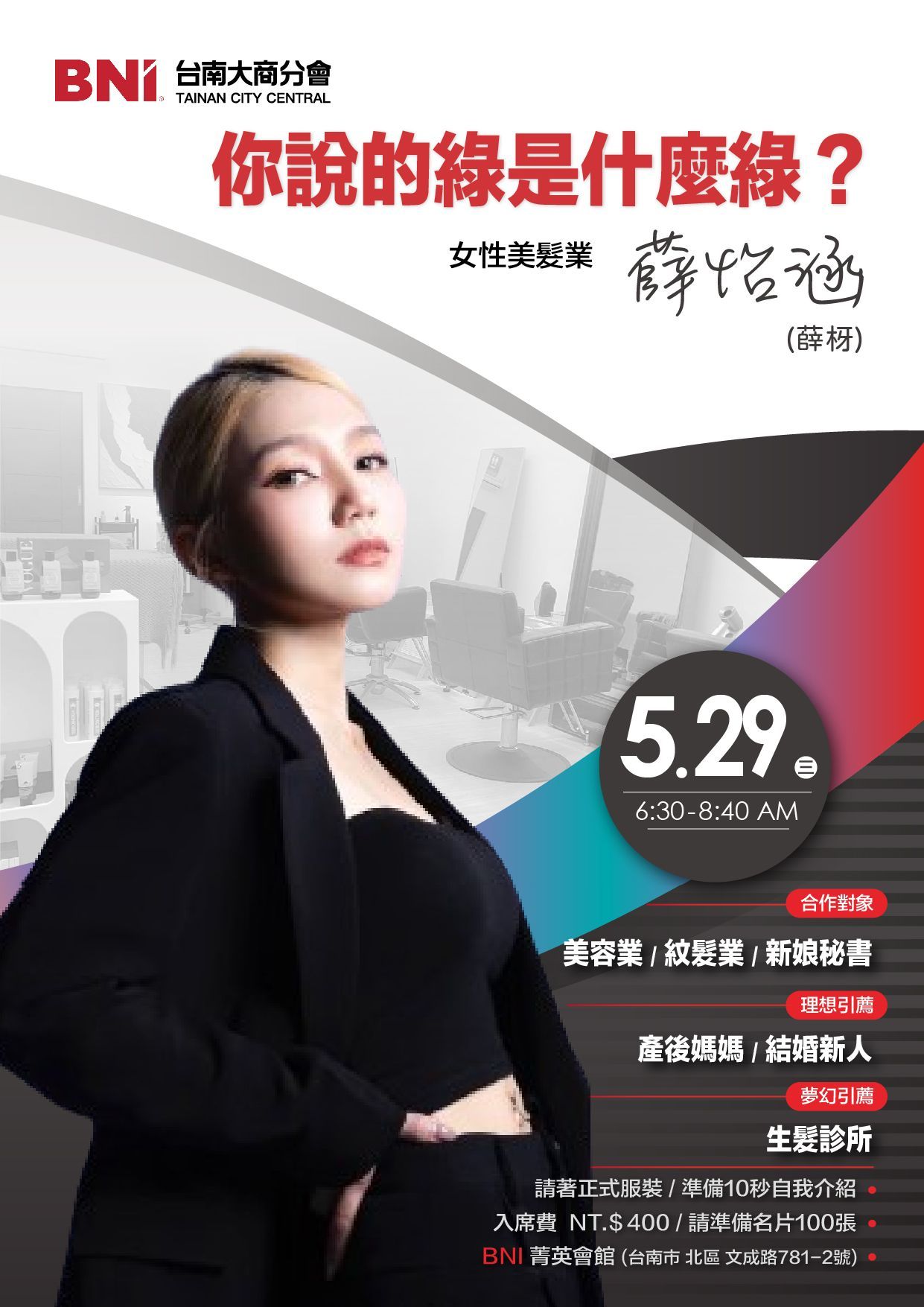 堅持品牌與品質,更在Google擁有4.8顆星,接近百位客戶的一致好評,期盼可以與各項美業老闆結盟,包含美甲、美容、紋髮、新秘。也歡迎推薦產後媽咪、結婚新人、生髮診所給薛枒。邀請大家 5/29 一起來感受,讓頭皮會呼吸背後的秘密~