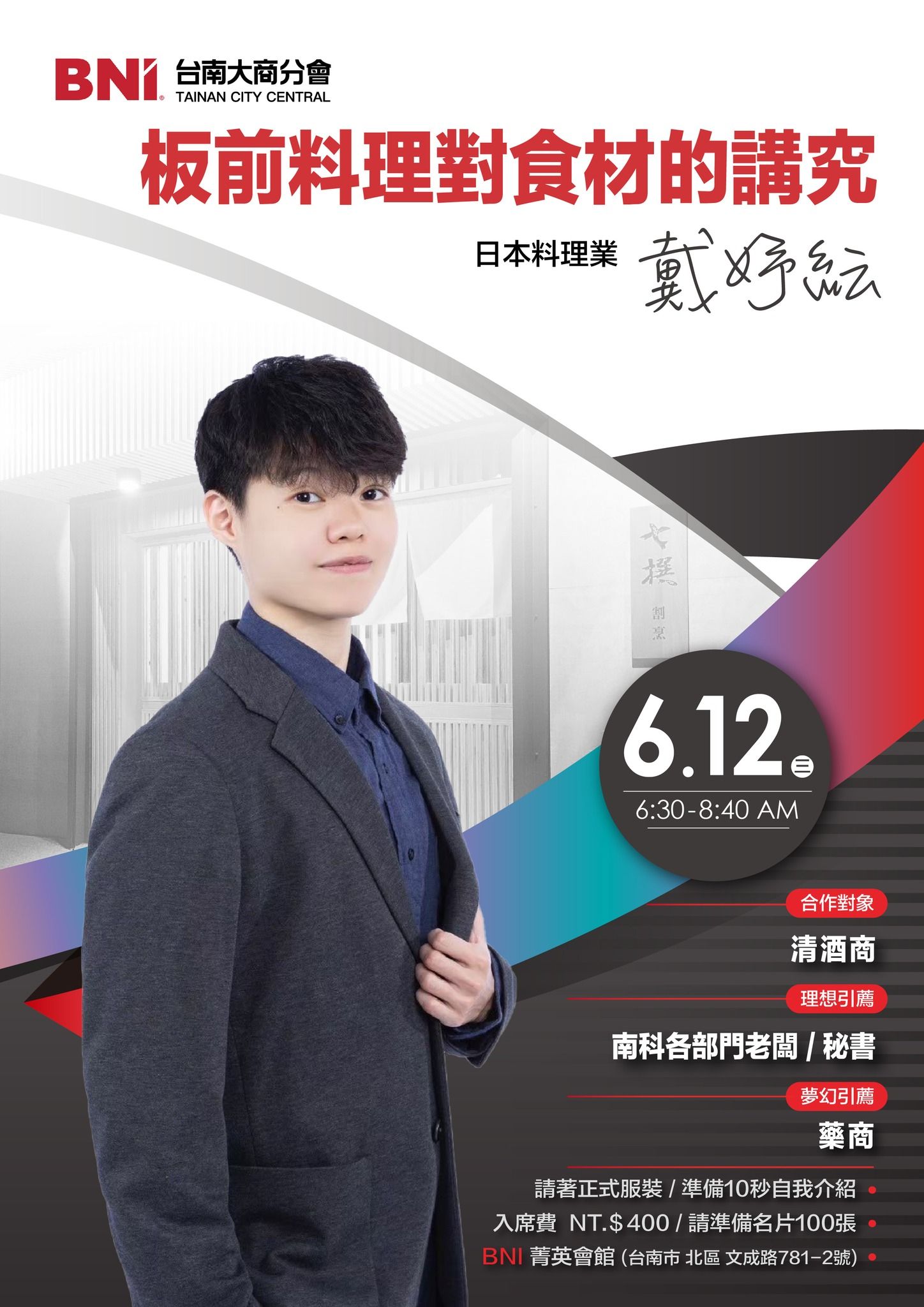 6/12的主題簡報由 #七撰 割烹 的主理人戴妤紜來與大家分享,如何結合季節性食材、 烹飪技巧、刀工、調味…等,通過精細的食材處理,改變食物的口感和風味,讓顧客享用美食同時也欣賞料理的製作過程,嚴選8成以上自日本空運來台的高品質食材,結合板前文化的深層意義,創造藝術品級的美食。