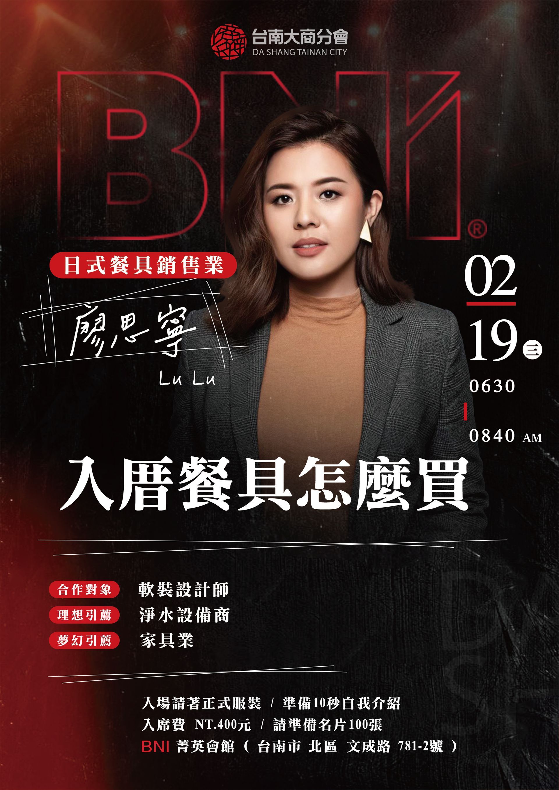 2/19(三)是日式餐具銷售業 廖思寧 Lu Lu 的主題簡報日