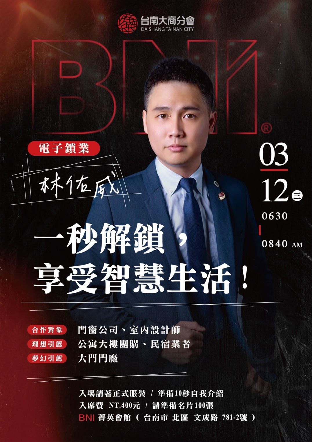 3月12日(三)是電子鎖業林佑威主題簡報