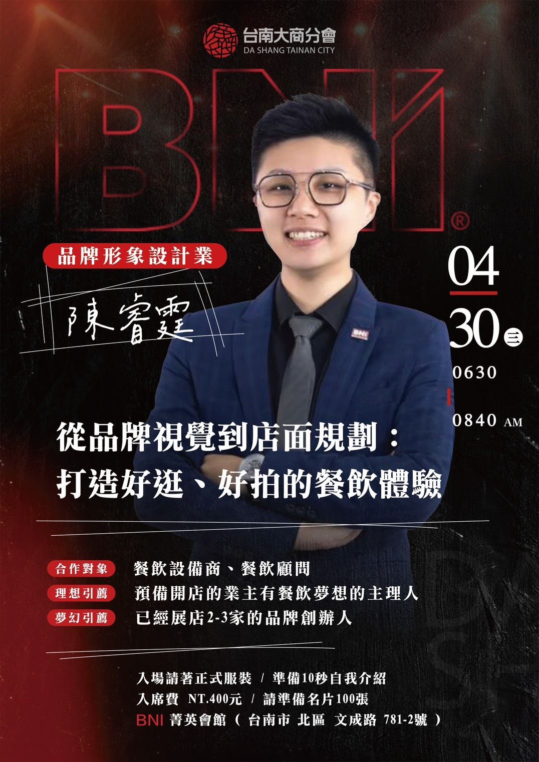 4/30 (三)是品牌形象設計業 陳睿霆 的主題簡報