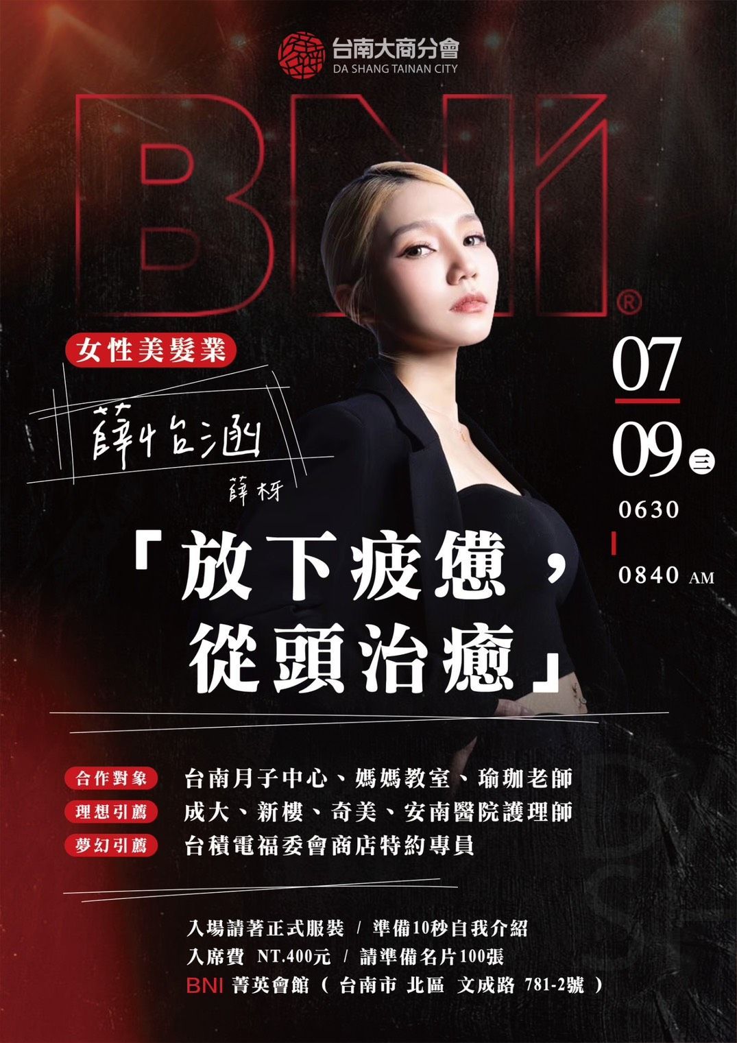 地點:BNI菁英會館(台南市北區文成路781-2號)