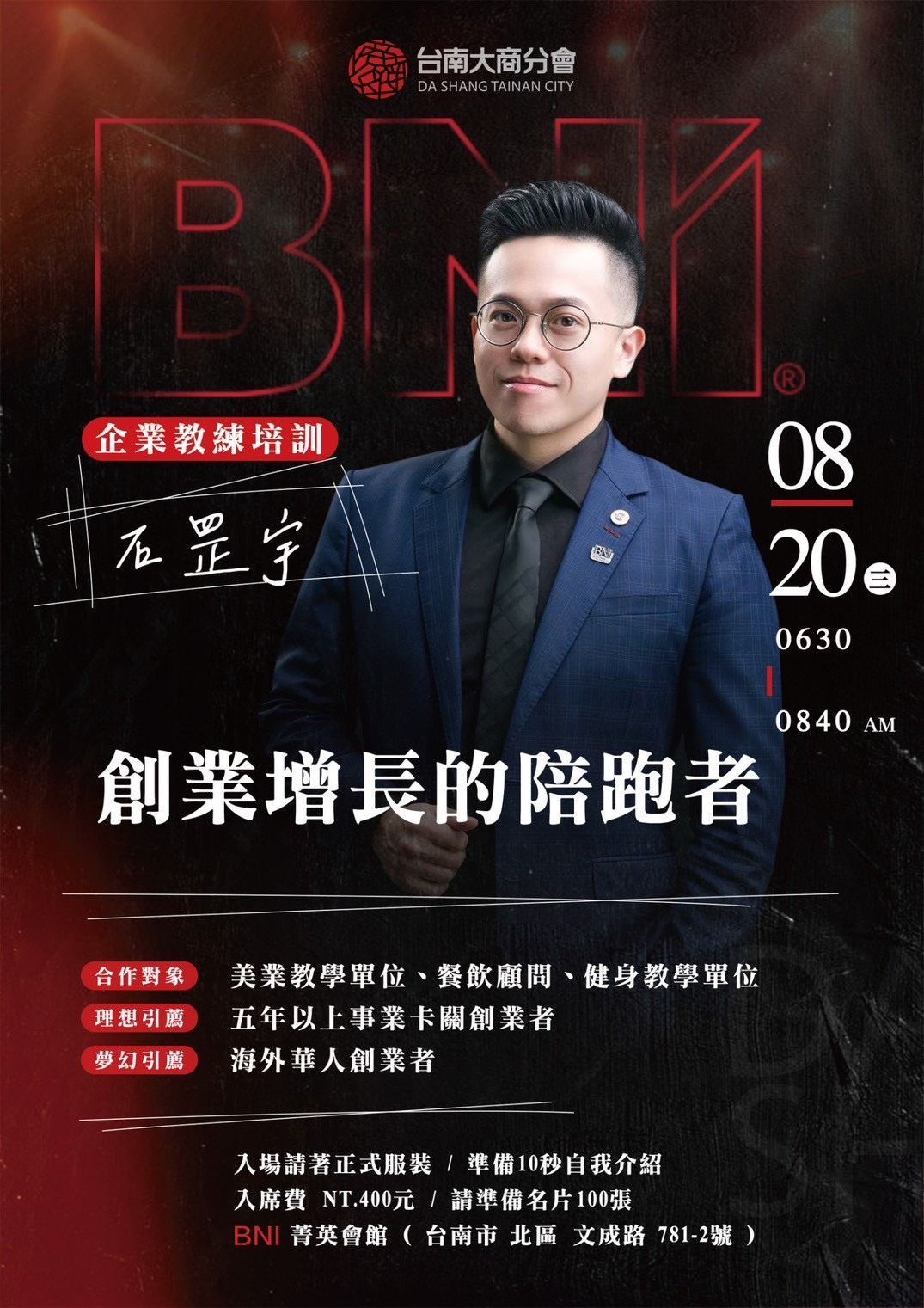 .地點:BNI菁英會館(台南市北區文成路781-2號)