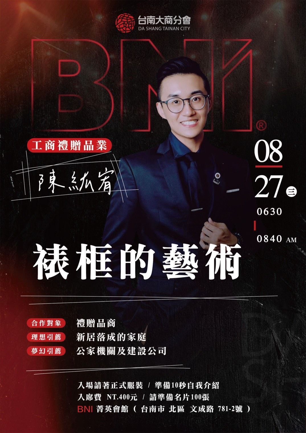 .地點:BNI菁英會館(台南市北區文成路781-2號)