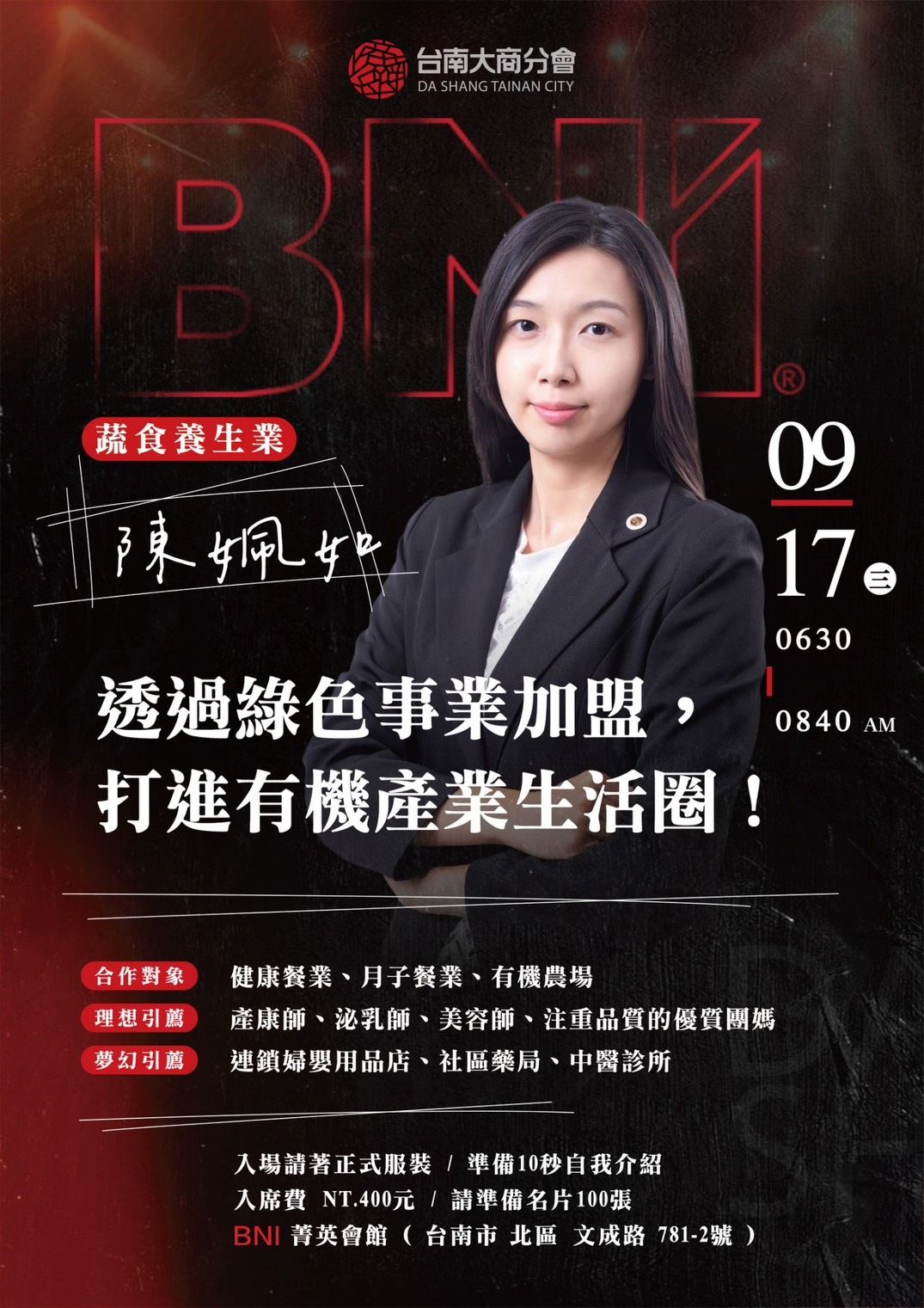 . 地點|BNI菁英會館(台南市北區文成路781-2號)