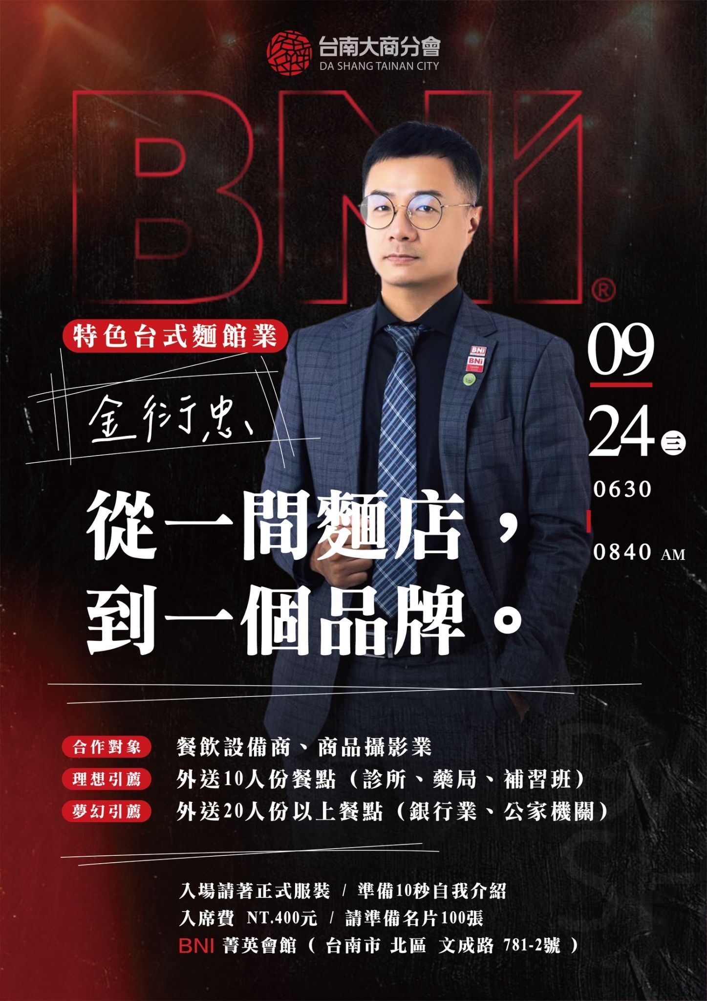 .地點:BNI菁英會館(台南市北區文成路781-2號)