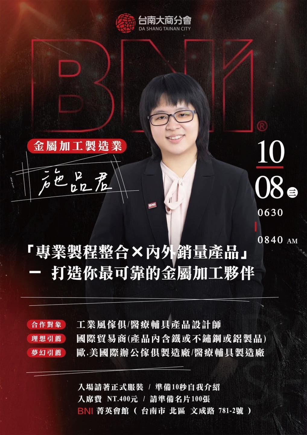 ・地點:台南市北區文成路781-2號|BNI菁英會館